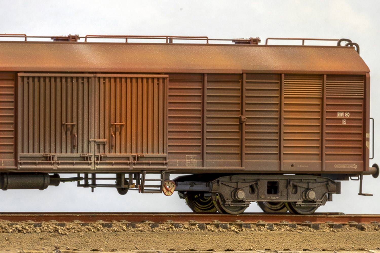 Vagon inchis tip Gas CFR cu weathering profesional, se livreaza cuple standard. Vagon cu Nr. 11 RIV-MC OPW 1901 010-0