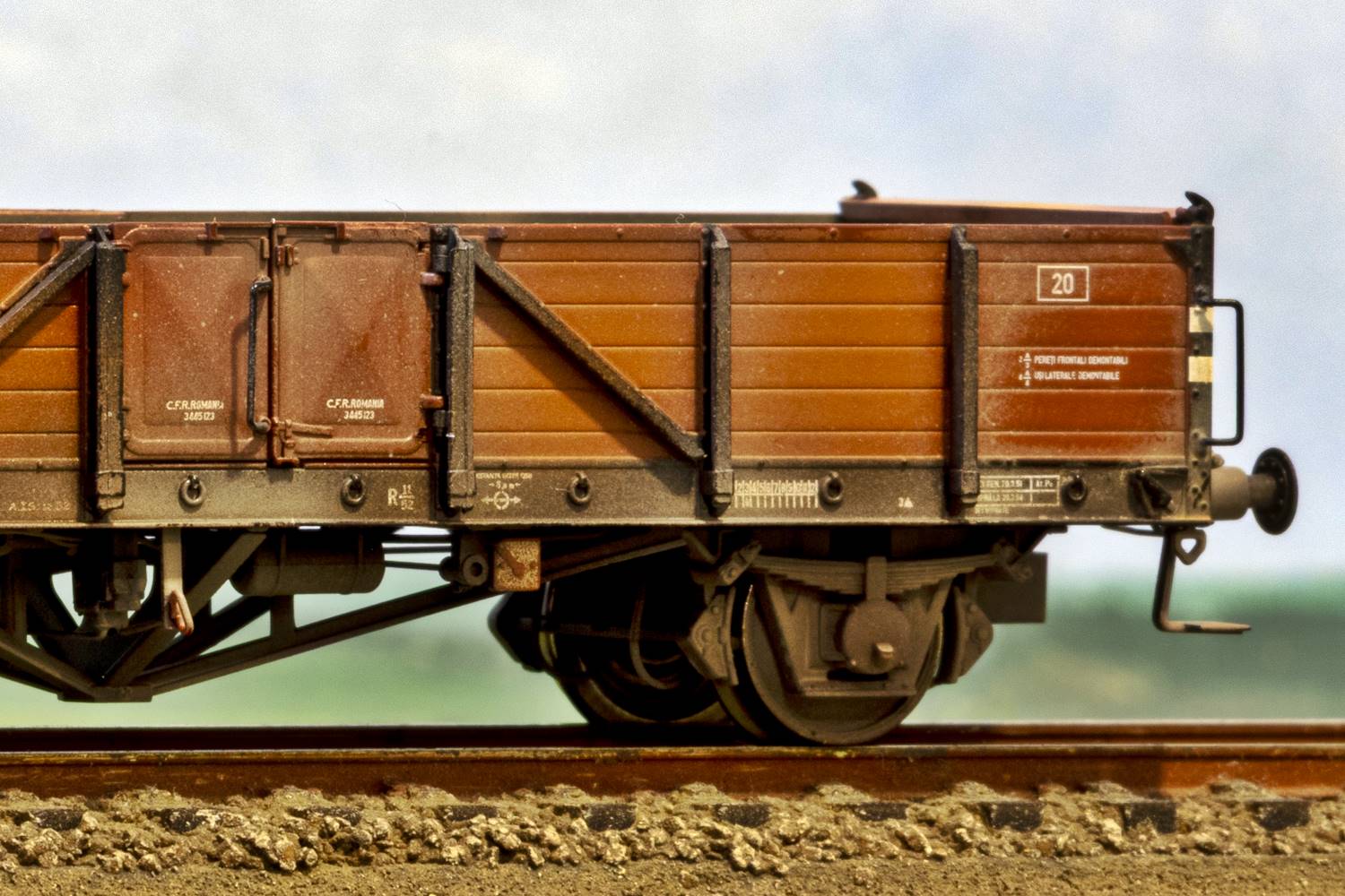 Vagon cu weathering profesional, fiecare vagon este unicat. Tampoane functionale si obloane mobile.